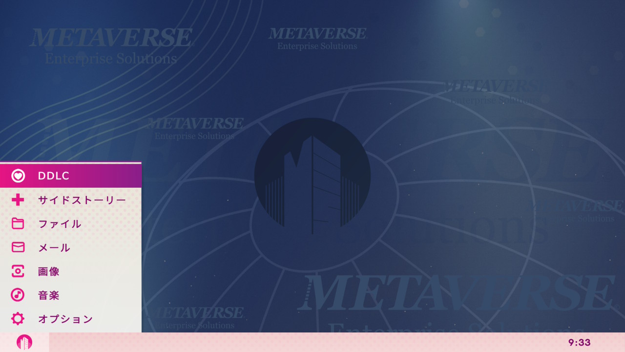 なんか謎のOSちっくな画面(METAVERSE Enterprise Solutionsって書いてあるけど企業名? 仮にOSがWindowsだとした場合のマイクロソフトみたいな立ち位置の話だろうか)が表示され、常時表示のメニュー先頭が「DDLC」で、これを選ぶとさっきのタイトル画面に戻るという、謎の入れ子構造が仕掛けに含まれてるみたい。なんだこれ。